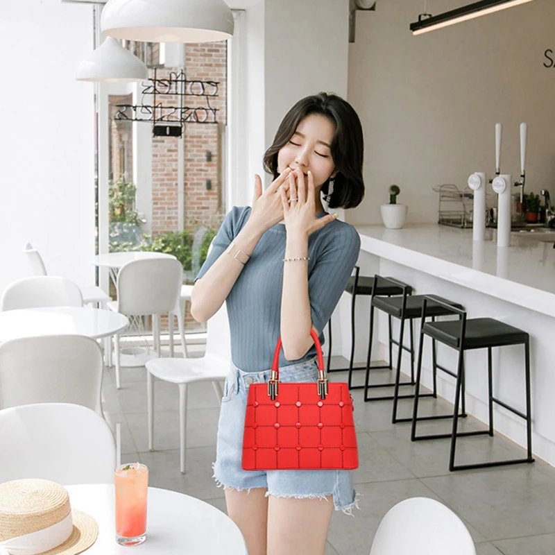 Flash Sale Ladies Tote Leather Wallet Plaid Studded Tote Women'S Shoulder Diagonal Bag